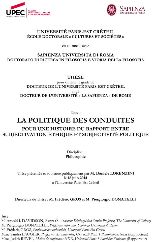 “The Politics of Conduct. A History of the Relationship between Ethical Subjectivation and Political Subjectivity”