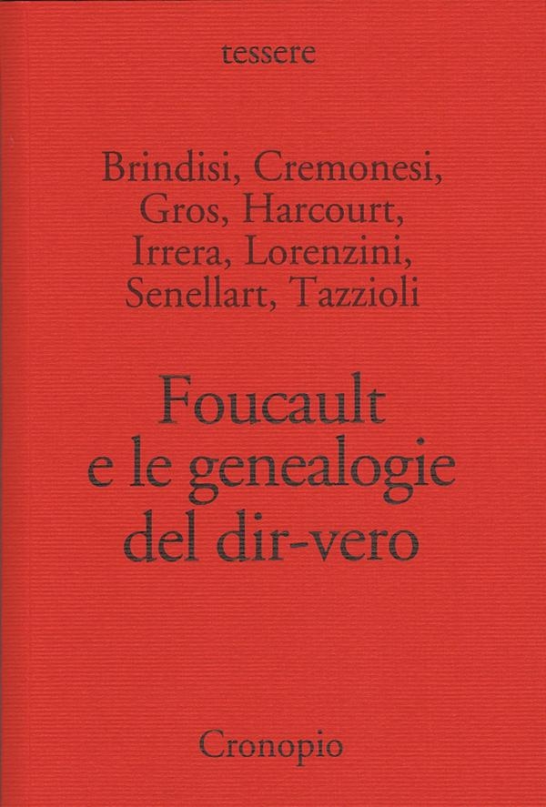 Brindisi, Cremonesi, Gros, Harcourt, Irrera, Lorenzini, Senellart, Tazzioli, Foucault e le genealogie del dir-vero Cronopio (collana “Tessere”), Napoli 2014, pp. 219 ,