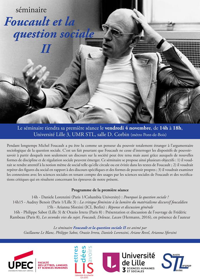 16h – Philippe Sabot (Lille 3) & Orazio Irrera (Paris 8) : Présentation et discussion de l’ouvrage de Frédéric Rambeau (Paris 8), “Les secondes vies du sujet. Foucault, Deleuze, Lacan” (Hermann, 2016), en présence de l’auteur