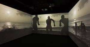 He’s also made his first film, which speaks, amid paradisal swimming scenes, of how the self (so central to the romantics) has been violently denied to black people. In voiceover, we get quotes from philosopher Michel Foucault’s Madness and Civilisation, and African-Caribbean philosopher, revolutionary and psychiatrist Frantz Fanon’s The Wretched of the Earth, about “otherness”, engendered by colonisation or imposed on the mad, as well as the medieval “ship of fools” and its pilgrimage for selfhood. While this brings an intellectual framework behind the seascapes somewhat neatly into focus, the thinkers’ weighty ideas about psychic violence and cultural trauma are never convincingly borne out in the works themselves.