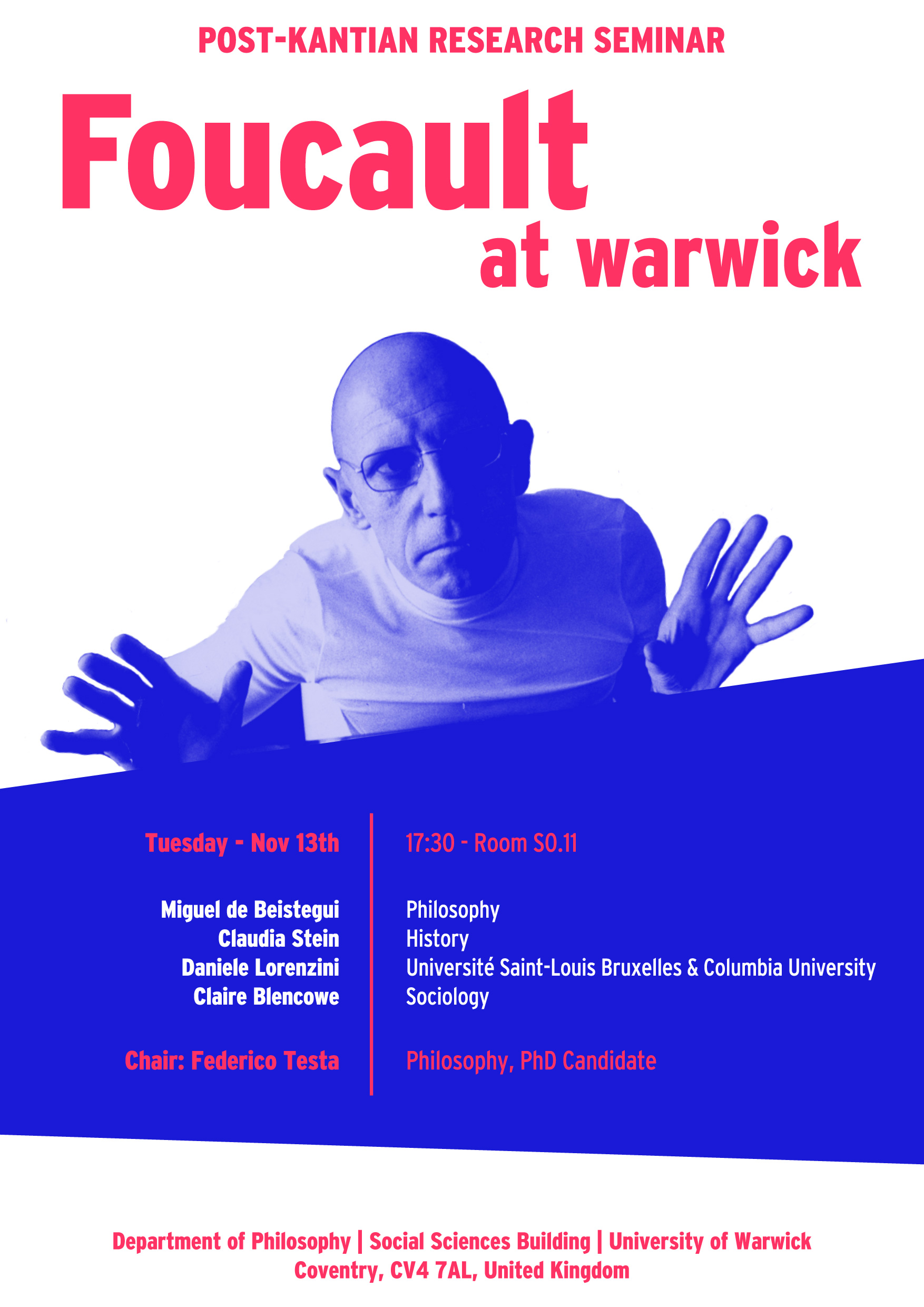 Foucault at Warwick – seminar (2018) 3 November 2018 Share this:Share Click to share on Facebook (Opens in new window) Facebook Click to email a link to a friend (Opens in new window) Email Click to print (Opens in new window) Print Click to share on LinkedIn (Opens in new window) LinkedIn Click to share on Reddit (Opens in new window) Reddit Click to share on Bluesky (Opens in new window) Bluesky Click to share on WhatsApp (Opens in new window) WhatsApp Click to share on Mastodon (Opens in new window) Mastodon Click to share on Pinterest (Opens in new window) Pinterest Click to share on Threads (Opens in new window) Threads Click to share on Tumblr (Opens in new window) Tumblr Click to share on X (Opens in new window) X Click to share on Pocket (Opens in new window) Pocket Like Loading... Related
