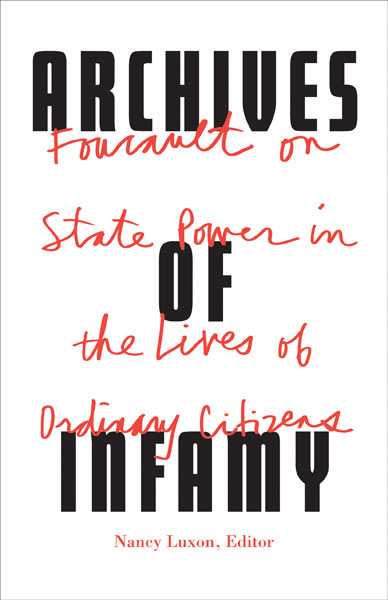 Nancy Luxon, Editor, Archives of Infamy. Foucault on State Power in the Lives of Ordinary Citizens, University of Minnesota Press, 2019.
