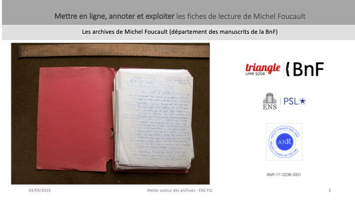 Mettre en ligne, annoter et exploiter les fiches de lecture de Michel Foucault – Archive ouverte HAL