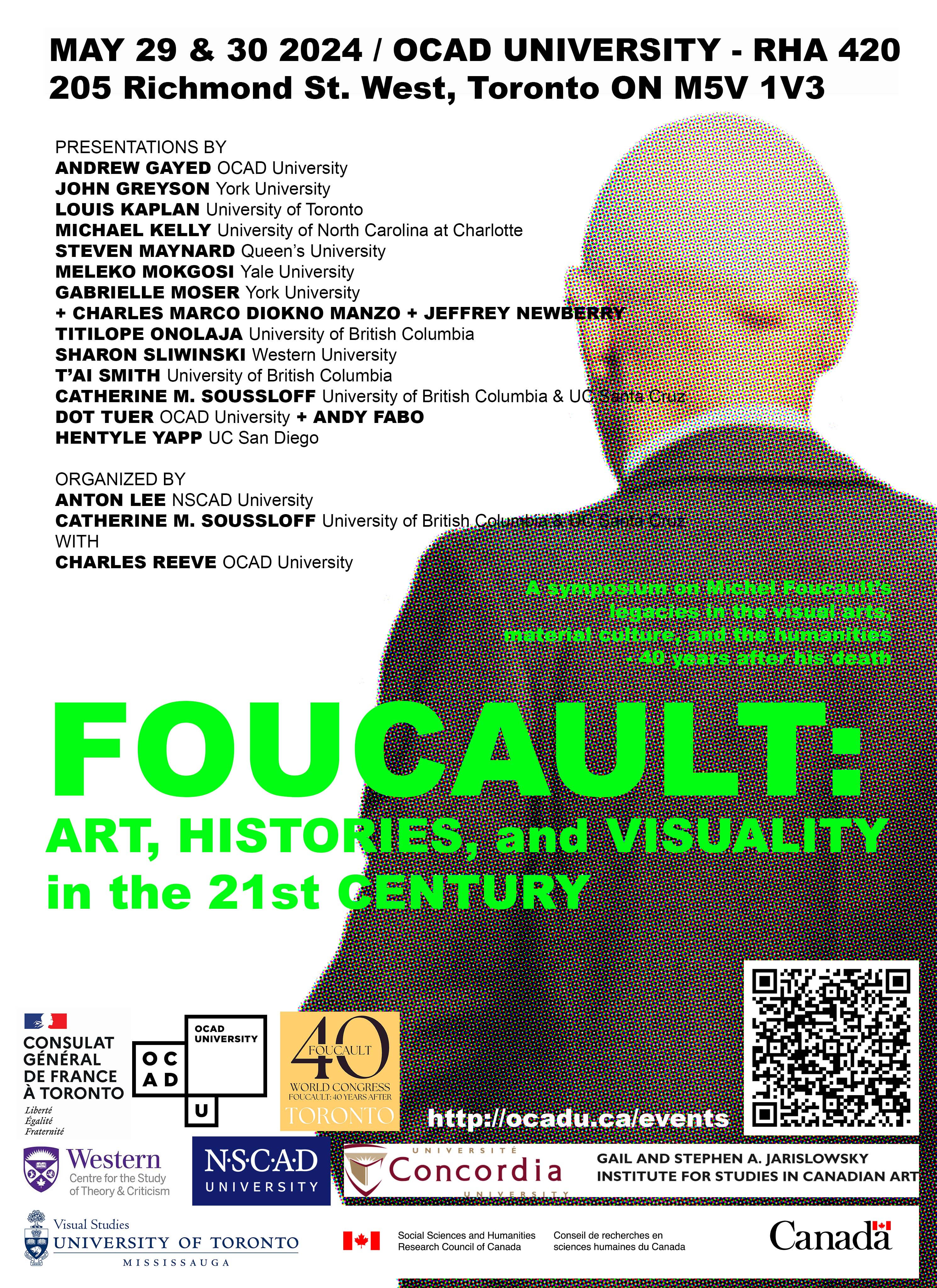 OCAD University is pleased to host the academic symposium Foucault: Art, Histories, and Visuality in the 21st Century, organized by Dr. Anton Lee, NSCAD University and Dr. Catherine M. Soussloff, UBC & University of California Santa Cruz, in collaboration with Dr. Charles Reeve, OCAD University.